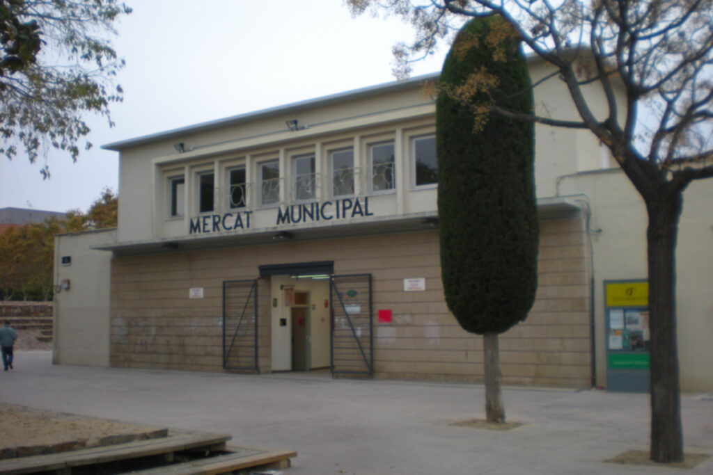 Edificio de los años 60, construido en el casco urbano de Viladecans para abrigar los puestos de venta de frutas, verduras y pescado que hasta entonces se instalaban en una de las aceras de la Plaza de la Villa. Compositivamente se trata de un edificio de planta rectangular de 25 x 43 m, altura total sobre rasante de 9 m, simétrico y equilibrado, tanto en planta como en sus fachadas. Está formado por un cuerpo principal definido por una estructura de hormigón visto muy potente que hay que preservar, que define la sala de ventas del mercado y por dos cuerpos menores adosados que integran servicios generales, despachos y dependencias de uso interno del mercado. El edificio dispone de dos accesos opuestos. A nivel arquitectónico, el mercado se presenta como un edificio singular «a cuatro vientos» con una cierta importancia a nivel urbanístico. Su característica principal es la estructura portante que compone el cuerpo principal del edificio, formada por 6 costillas de hormigón con un desarrollo parabólico de radio aproximado de 12 m, que descargan sobre los pilares de las dos fachadas laterales y que distan entre si 5 metros. De esta manera se determina un espacio central libre para el empleo con los puestos existentes. La cubierta de este cuerpo principal está formada por una losa de hormigón curvada impermeabilizada apoyada sobre estas costillas. Las cubiertas de los otros cuerpos adosados son planas. Dos lucernarios longitudinales permiten la entrada de luz natural al interior del espacio principal.